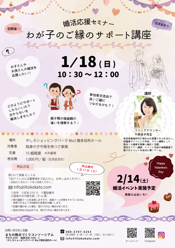 婚活応援セミナー「わが子のご縁のサポート講座」参加者募集‼
